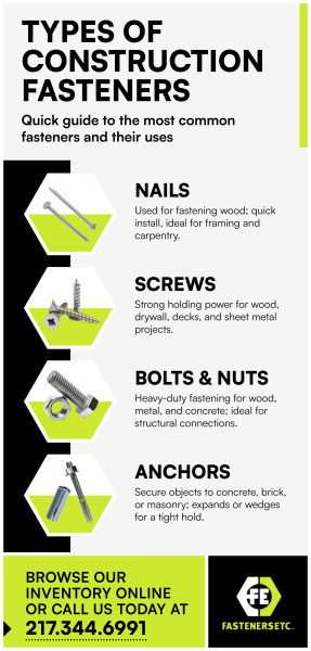 At Fasteners Etc., Inc., we understand how crucial the right fastener is for any project. With decades of experience and deep product knowledge, we help contractors, builders, and DIYers select fasteners that fit their specific requirements. From common nails and screws to specialized anchors and high-strength bolts, the world of construction fasteners is broad and versatile.